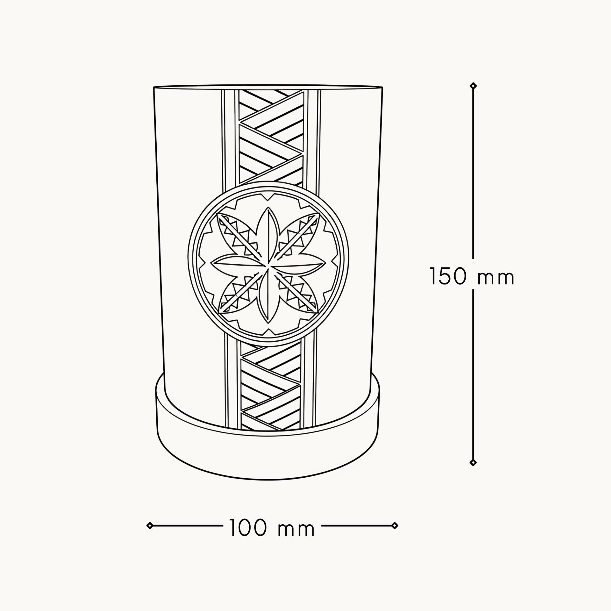 - Dimensions: 100mm Diameter x 150mm H